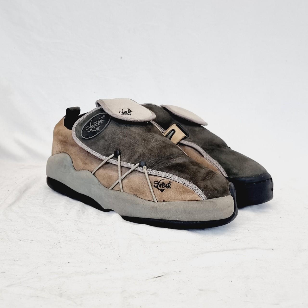 Swear Alternative platforms with asymmetrical fronts and quality detailing. Grey, olive, khaki, beige tan and black in colour, these vintage sneakers sit comfortably at the ankle. Like most kicks by Swear Alternative, these feature chunky platforms, but these ones aren't so big that they become impractical for daily use. These originated in the 90s / y2k era and are very rare to find